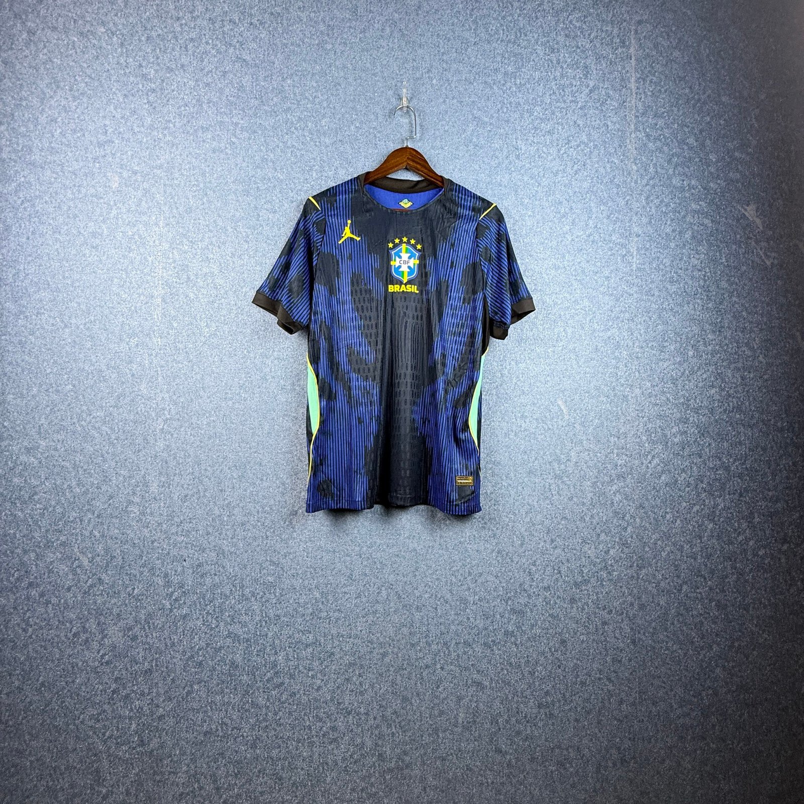 Bold deep-blue base with vibrant accents – a modern reimagining of Brazil’s iconic away colors, refined for a new generation
